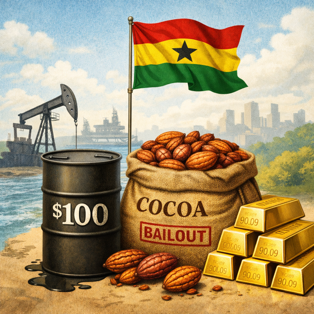 The caveat, it turns out, was the more important part of the sentence. Beginning next week, that careful architecture of macro reassurance faces a twin stress test whose components are, in the most Ghanaian of ironies, drawn from the very commodities that built the euphoria in the first place. Oil prices have surged past a hundred and eleven dollars a barrel on the back of an expanding conflict involving Iran and fears of disruption in the Strait of Hormuz. And the international price of cocoa, which Ghana’s marketing board had bet would remain near five thousand three hundred dollars a ton when it set the season’s farmgate price in October, has collapsed to around three thousand dollars—a halving that has broken the financing machinery of the cocoa value chain, stranded buyers, impoverished farmers, and forced the government into an emergency liquidity injection that may or may not reach the people it is meant to save.